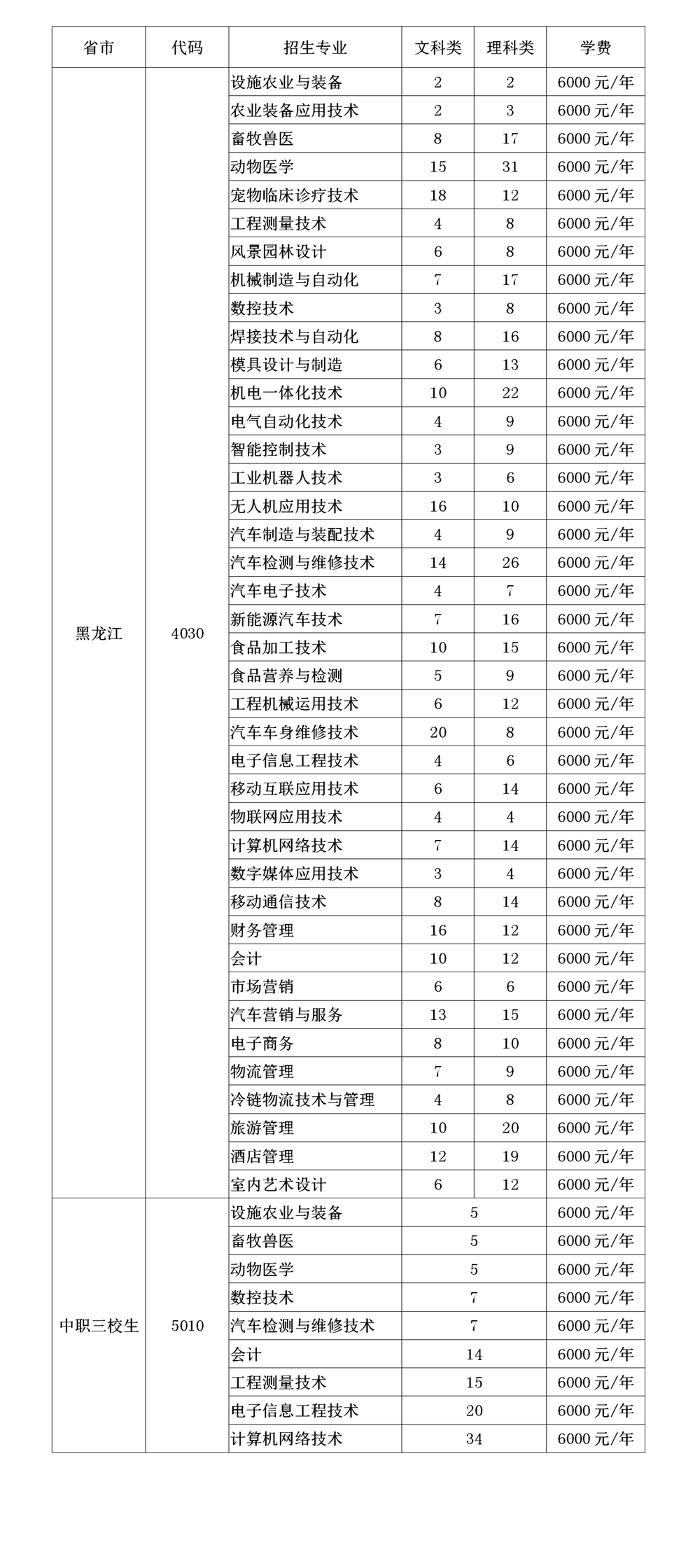 2019年黑龙江省分专业招生计划