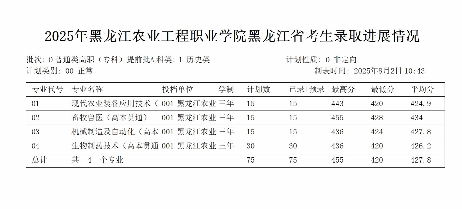 2025年黑龙江高本贯通录取分数