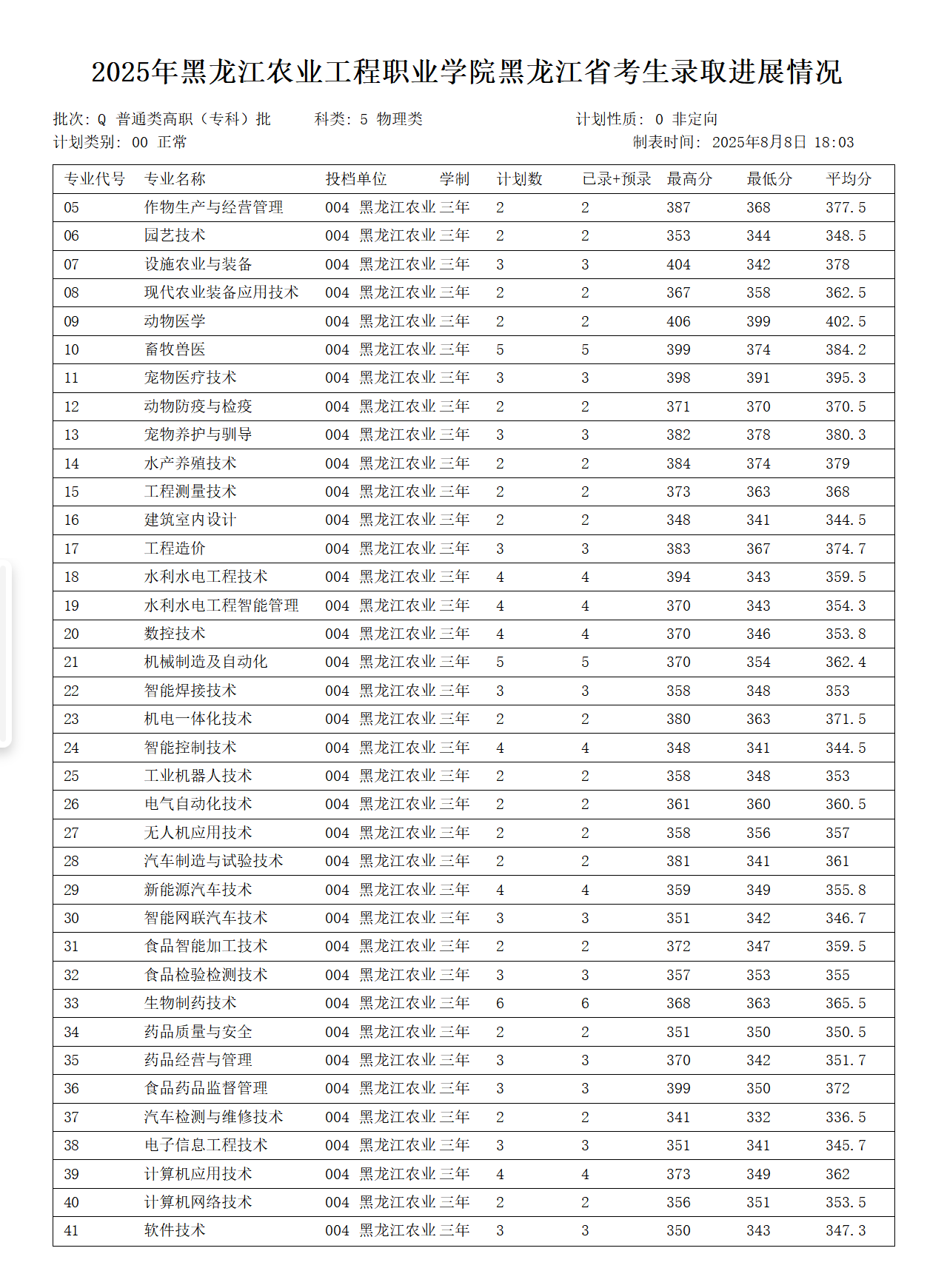 2025年黑龙江省录取分数