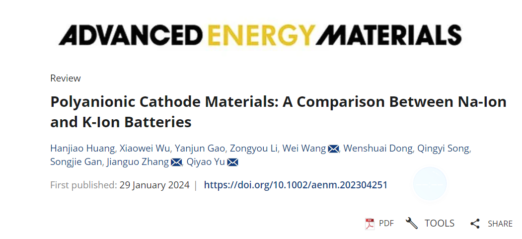 近日,350vip8888新葡的京集团张建国教授团队在国际顶级期刊《Advanced Energy Materials》(影响因子27.800)发表题为《Polyanionic Cathode Materials: A Comparison between Na-ion and K-ion Batteries》的综述(DOI: 10.1002/aenm.202304251),文章综述了聚阴离子正极材料在钠/钾离子电池中的结构和性能上的差异。本单位通讯作者为张建国教授、于琪瑶副教授,第一作者为350vip8888新葡的京集团2022级硕士生黄瀚蛟。