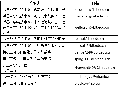 报考兵器工程(全日制)的复试考生请根据学院确认后的复试意愿方向将邮件发至上面兵器学硕对应的邮箱。
