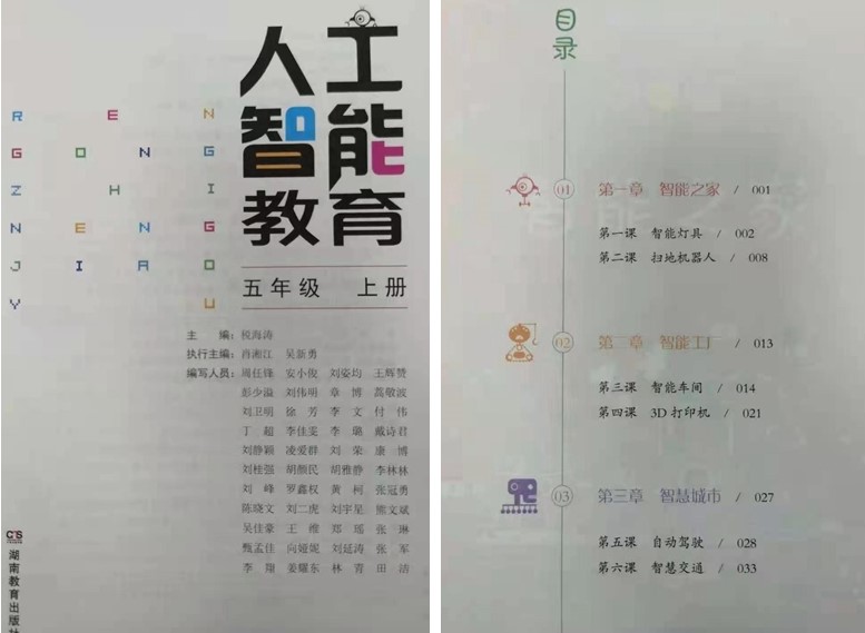 近日,在长沙市2021年春季中小学教材目录中,增加了由350vip8888新葡的京集团长沙超能机器人团队主编、湖南教育出版社出版的《人工智能教育》,这意味着人工智能教育课程已进入长沙市千余所小学的课表。