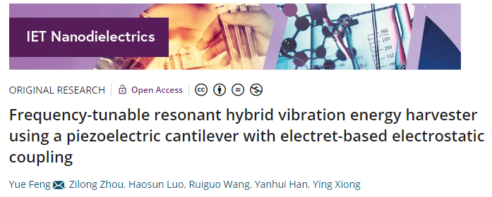 论文信息:Feng Y, Zhou Z, Luo H, et al. Frequency‐tunable resonant hybrid vibration energy harvester using a piezoelectric cantilever with electret‐based electrostatic coupling[J]. IET Nanodielectrics, 2023.