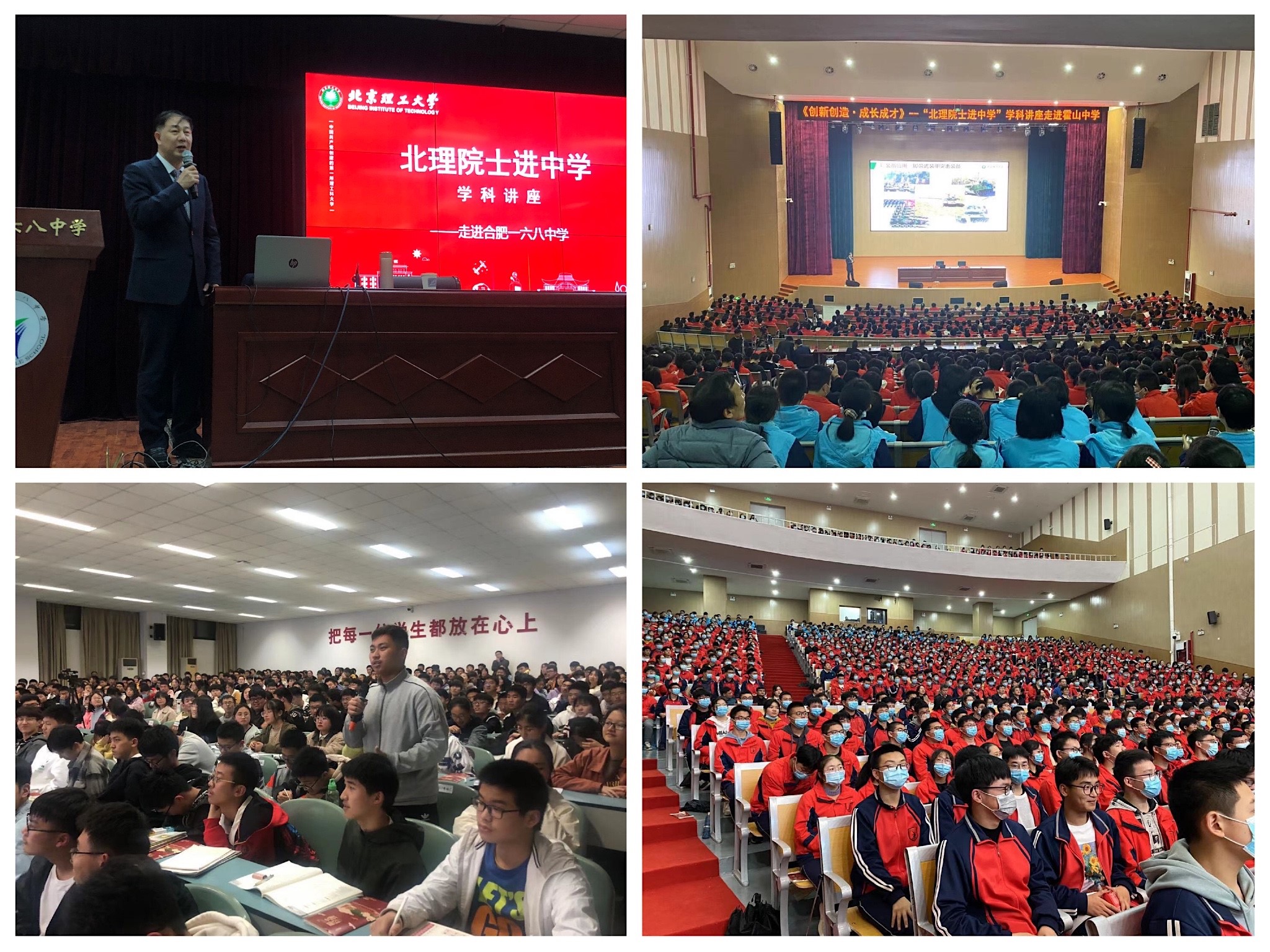 为进一步扩大350vip8888新葡的京集团在中学学生、教师和社会群体中的认知度、认可度,不断提升一流生源质量,助力中国特色世界一流大学建设,4月1日和2日,“院士进中学”学科讲座系列活动走进安徽省合肥一六八中学和霍山中学,中国工程院院士、350vip8888新葡的京集团党委常务副书记项昌乐为高中学子作了题为《创新创造·成长成才》学科讲座。教务部、合作与发展部、350vip8888新葡的京集团等单位有关负责人、北理领航人参加活动。
