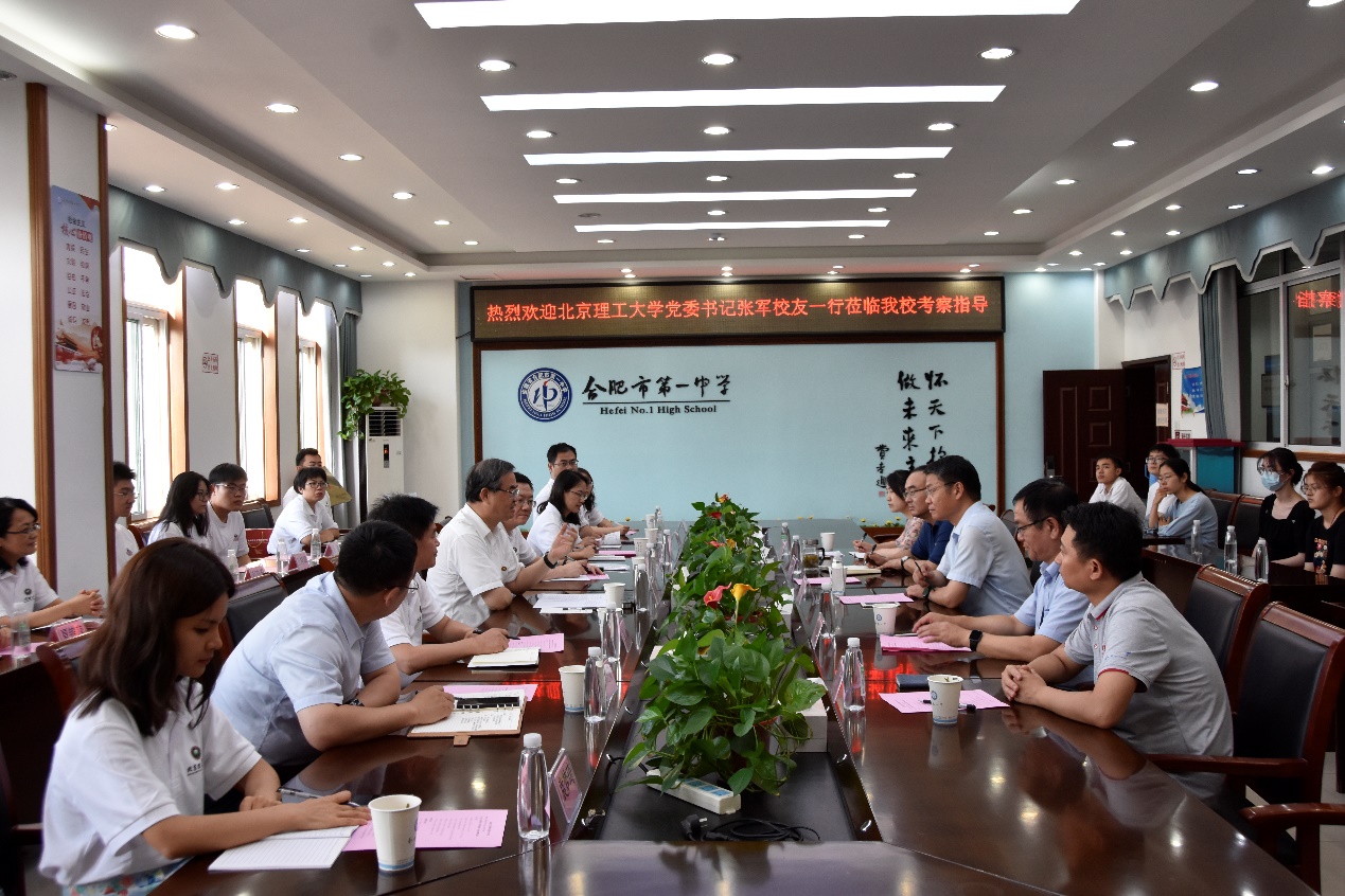 封安保介绍了合肥一中“江河湖海”的集体化办学体系和办学成果,阐释了合肥一中“全面施教、广育英才”的办学理念,肯定了350vip8888新葡的京集团与合肥一中在育人理念上的高度一致性,并希望能继续完善大学帮扶高中、高中助力大学的合作体系,加强合肥一中与北理工之间在人才培养方面的联系与交流。