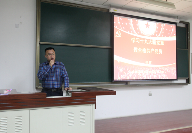 张雷老师讲座主题为《学习十九大新党章,做合格共产党员》,课程就党章的基本概念,党章的地位,党章的作用进行了详细的阐述。随后,张雷老师带领同学们一起回顾了从中共一大到十九大之间,党章从初步编写制定到逐步完善的过程,并详尽分析了十九大党章中新修订的八项内容。课程最后,张老师以鲜活的案例再次强调了要想成为一名合格的共产党员,就必须遵守党章,要有坚定的信仰,不仅组织上入党,更要思想上入党,“组织上入党一生一次;思想上入党一生一世”,坚定了同学们入党的信念以及对信仰的坚守。