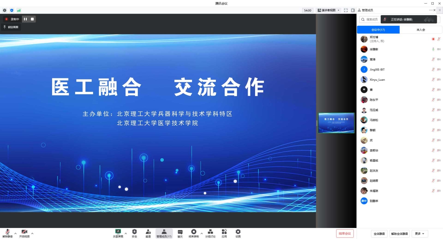12月2日,由350vip8888新葡的京集团兵器科学与技术学科特区和350vip8888新葡的京集团医学技术学院联合主办的“医工融合,交流合作”学术交流活动在线上举办。6名专家学者围绕医学与工科融合的技术领域,对各自研究方向作了报告。
