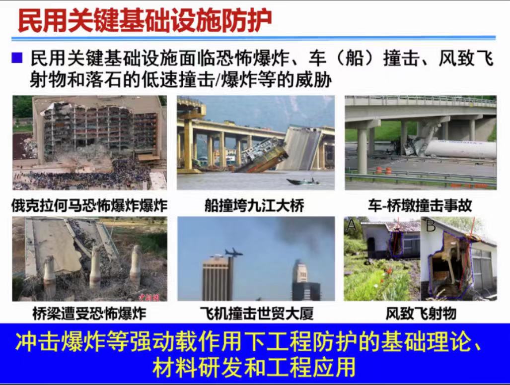 报告中,吴恒安提出了新标度律作为评价仿贝壳材料内部非弹性变形与宏观力学性能之间关系的准则,揭示了层间强非共价键相互作用调控实现强韧化设计的微观力学机理;李卫国原创性提出了一个可定量考虑温度对材料力学性能影响的方法—力热能量密度等效原理,建立了系列不含拟合参数的温度相关性断裂/屈服强度理论表征模型;胡玲玲的报告提出了多孔材料在冲击动载下的宏-细观建模方法,诠释了类多孔材料的动力电池表现出的“动态负效应”这一反直观现象;吴昊的报告结合自身的科研和工程实践经历,介绍了该课题组近期在军事和民用土木工程防护领域的研究工作,并对民用关键基础设施反恐防爆进行了详细地介绍;柳占立的报告重点介绍了数据驱动在声学人工材料、个性化人工骨组织材料的智能化设计方面的研究成果;李晓雁的报告实现了三类具有多级尺度、且轻质、高强韧的三维微纳米力学超材料的制备,解决了传统多孔结构材料力学性能互斥的难题;乔珺威的报告主要介绍了高熵合金在典型极端工况下服役行为和机理述;王中钢的报告重点阐述了冲击载荷作用下轻质结构的响应模式、吸能特性与强化机制,展望了轨道车辆轻质抗冲击结构的发展方向。