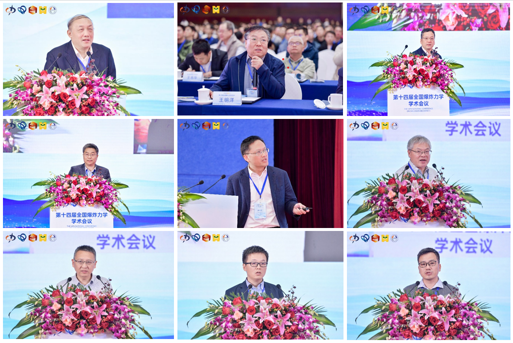 会议邀请杨卫院士、王明洋院士、庞思平教授、戴兰宏研究员等9位专家做了精彩的大会特邀报告,共设有1个主会场、26个分会场,共有908个口头报告和192份墙报展示。杨卫院士以“力学基本问题——从爆炸力学相关领域谈起”为题,按照力学的发展历史和层次划分,从确定性与不确定性、宏观与微观、跨层次与跨介质等方面,系统阐述了力学基本问题的内容和特点。报告涵盖了力学的多个方面,展示了力学的广阔前景和深刻内涵,对力学的发展和创新有着重要的启示和推动作用;王明洋院士针对重要目标的防护,结合偶然性和蓄意打击两种爆炸灾害,提出了韧性防护技术,构建出韧性评估与决策模型;庞思平教授以“高爆速含能材料理论与进展”为主题,结合近年来新型含能材料的分子合成策略与爆速提升效果,从氧平衡的调控、致爆基团的遴选、晶体结构的设计等方面给出了提升新型含能材料爆速的方法,并给出了高爆速含能材料的未来发展趋势。戴兰宏、罗胜年、周风华、陈军、郑志军、胡建波等分别作了题为“极端条件下高熵合金的塑性流动与断裂”、“动态极端条件下微细观结构的超快诊断”、“热钢化玻璃的强度和动态破坏——从“鲁伯特王子之泪”说起”、“含能材料反应机制的数值模拟研究”、“轻质防护材料设计:会猜,敢试,善于推广”、“压缩科学及其发展态势” 的大会特邀报告。